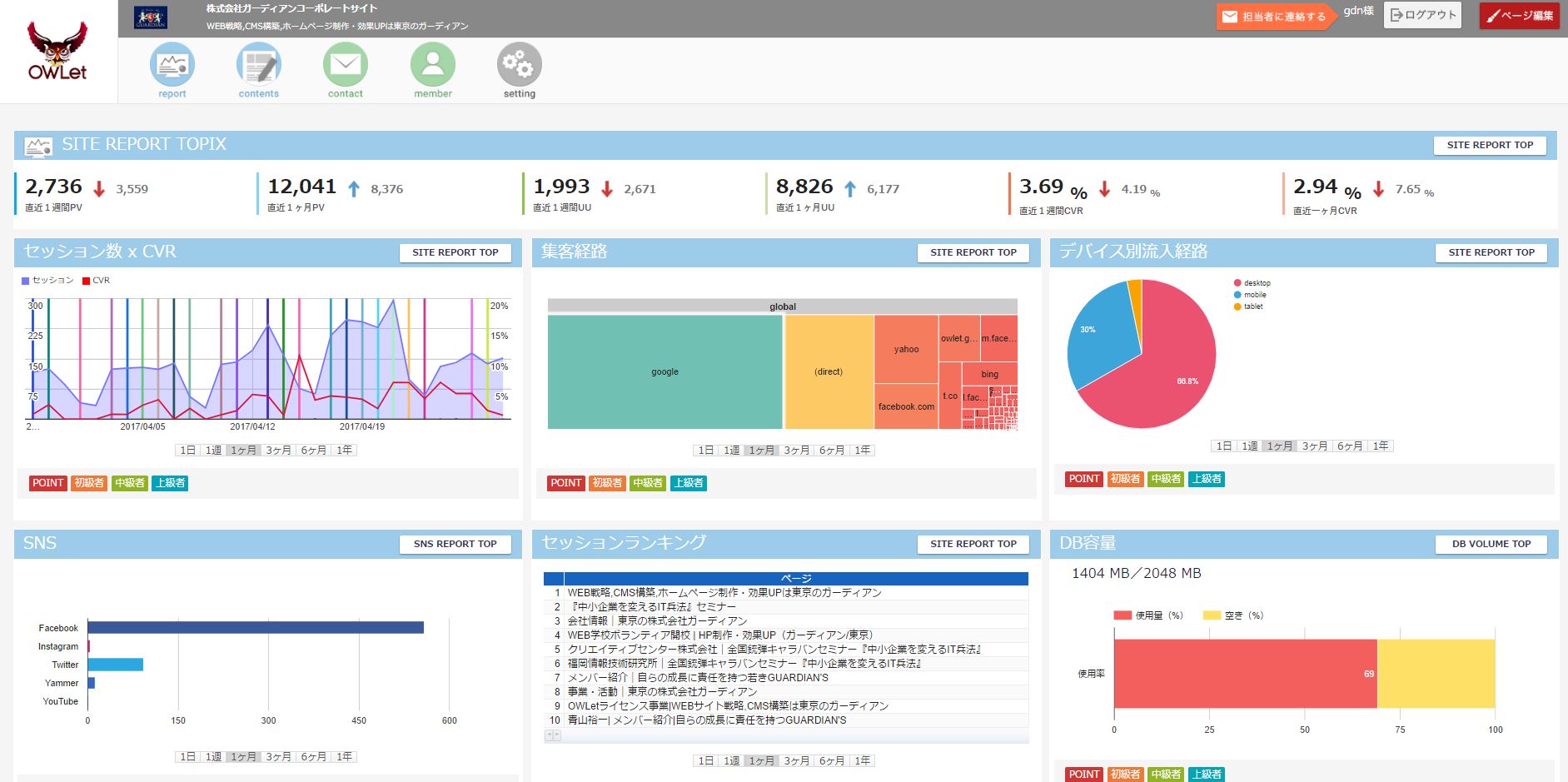 等々、日々サイト運営をする上で重要な解析データを、