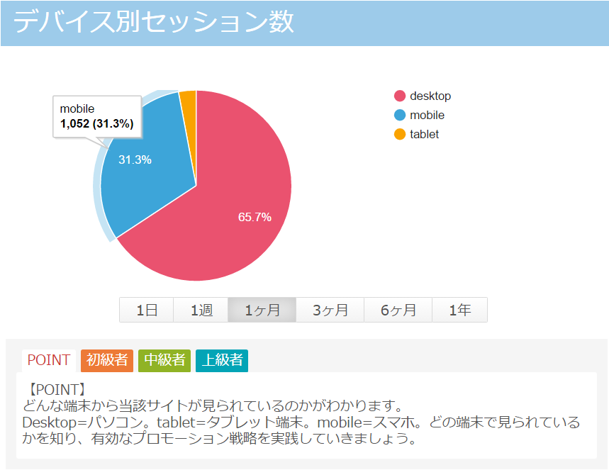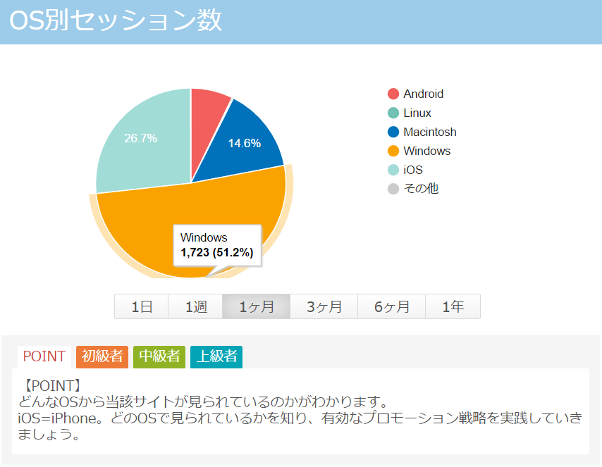 こちらも1日、1週、1ヶ月、3か月、6ヶ月、1年と遷移が見れるので、ユーザーの変化を捉えながら正しい判断を行う必要があります。