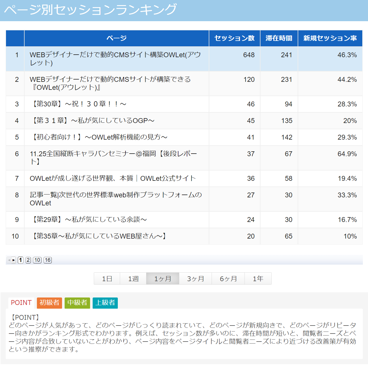 まずはOWLet Analyzerで現状の滞在時間を把握し、60秒の滞在時間をキープする事を目指しましょう。
