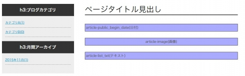 今回は図のように2カラムのレイアウトでサイト内ブログを構築します。