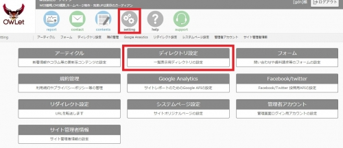 管理画面の「setting」>「ディレクトリ設定」と進みます。