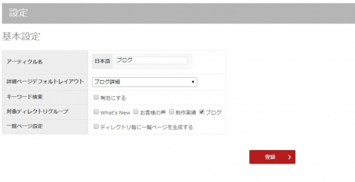 ページ下部の新規グループ登録から「ブログ」グループを作成します。