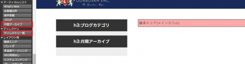 Step1の「ブログ共通」レイアウトに各アーカイブを設置します。