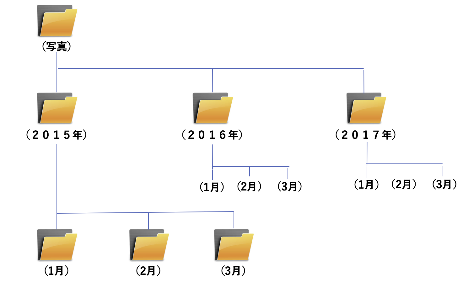 『2015年ー1月』のフォルダ、『2015年ー2月』のフォルダ、『2015年ー3月』のフォルダ
